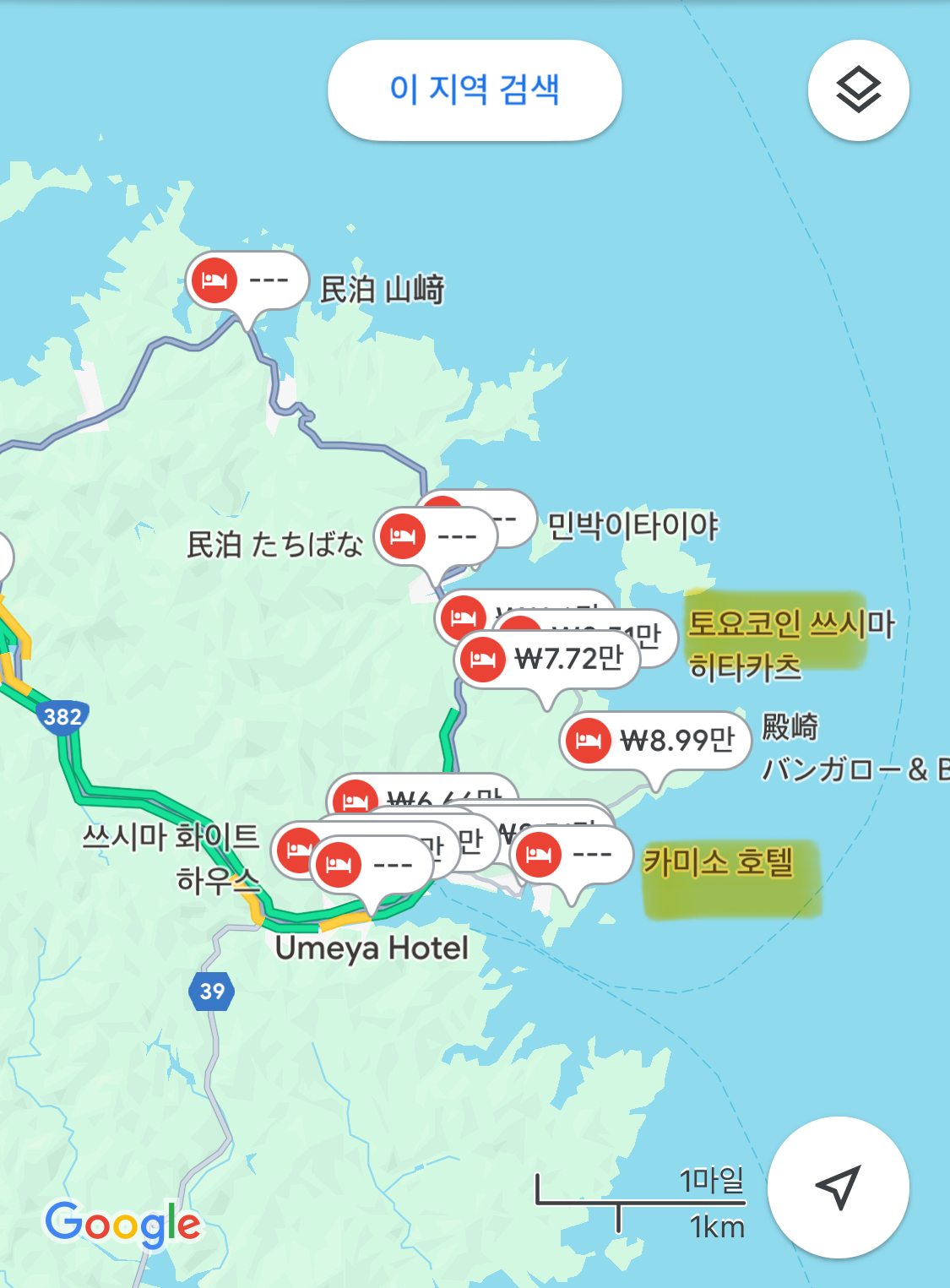 바로 쓰시마에 있는 호텔을 알아보았는데요,