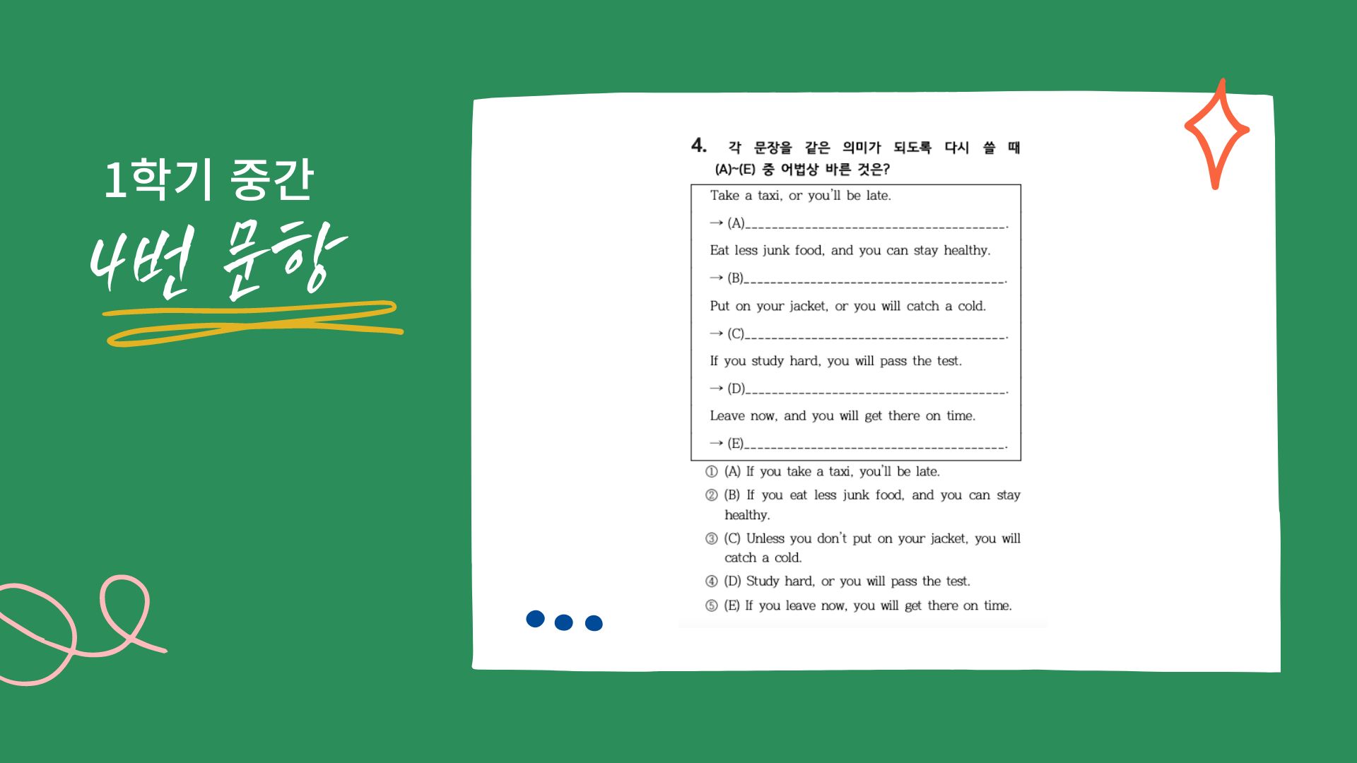 2번은 아까 말했던 자주 나오는 표현이죠.