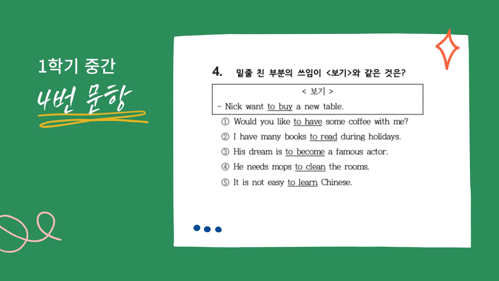 4번 문항은 to 부정사의 용법을 묻는 문제로