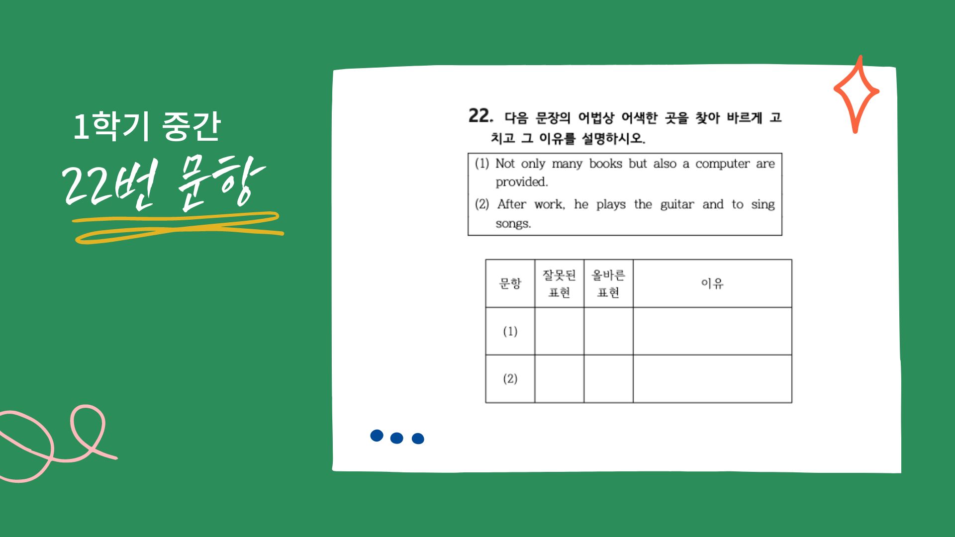 22번 문항은 서술형 문제로