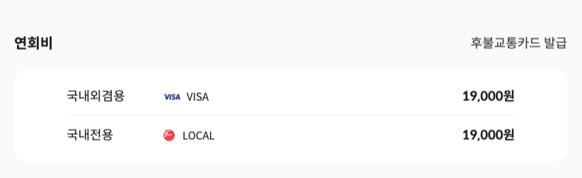 롯데카드는 연회비가 2만원에서부터 20만원까지