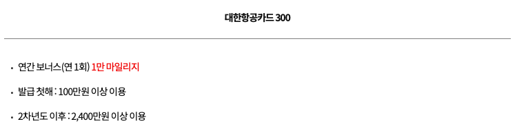 대한항공카드 300의 혜택이 그렇게 크지 않아서