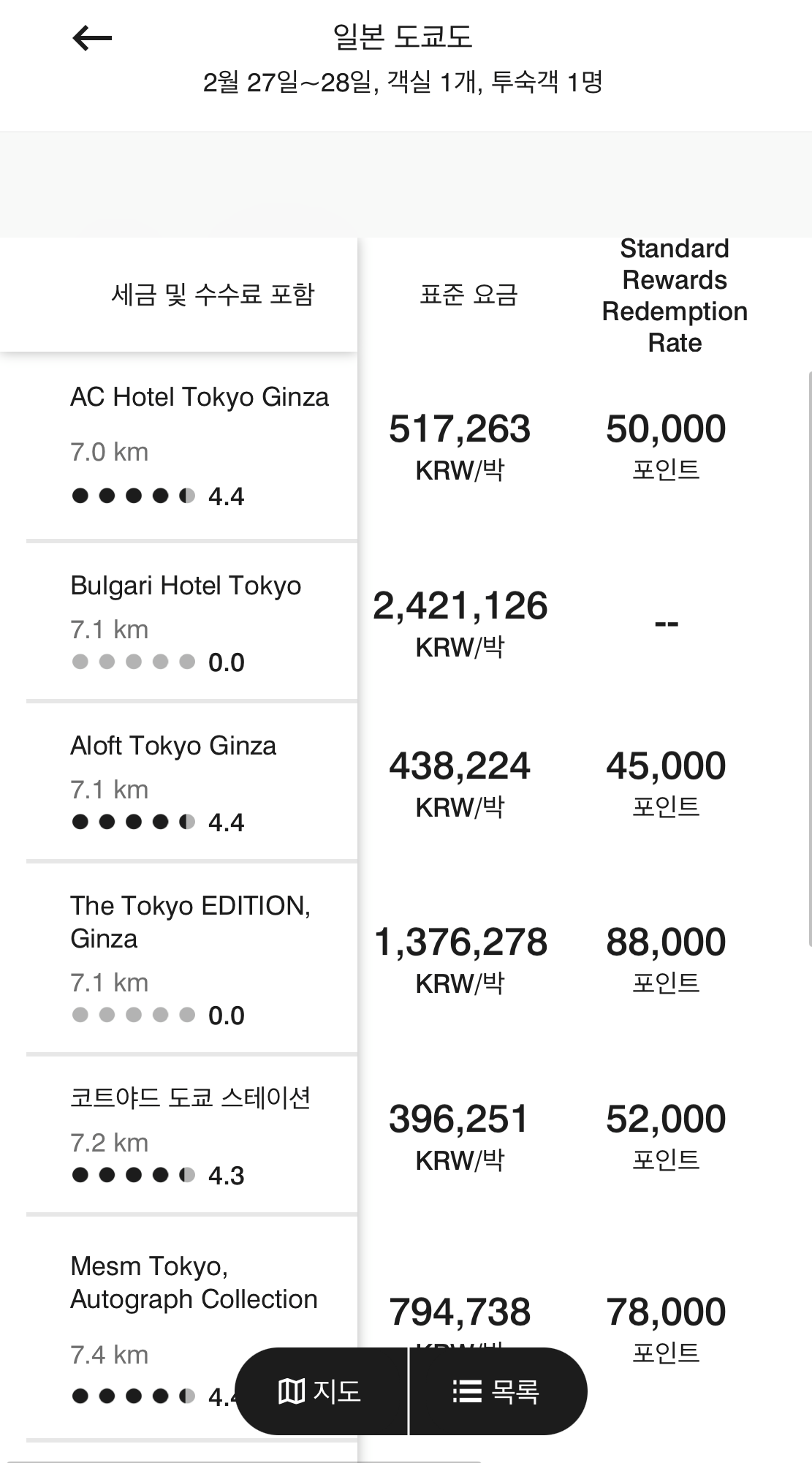 위의 도쿄에서 이용 가능한 포인트를 보시면
