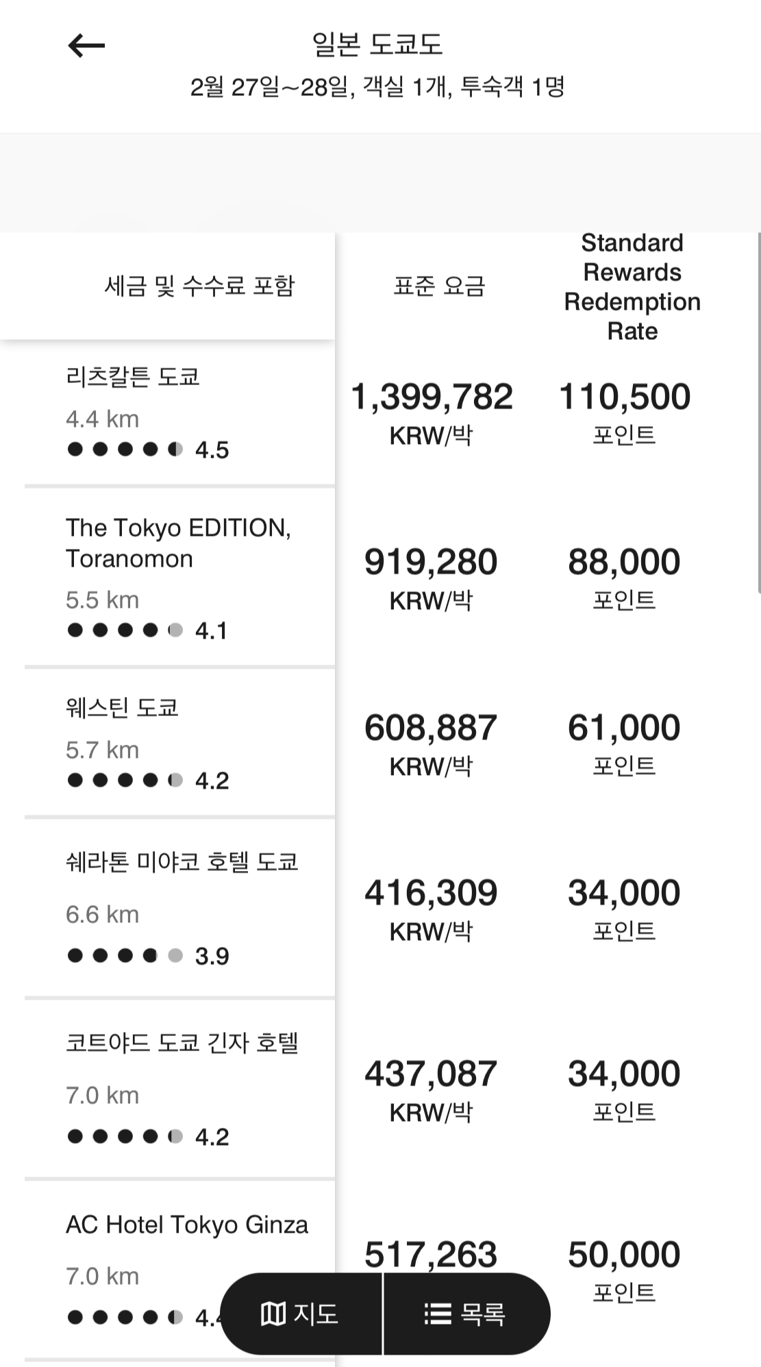 리츠칼튼 도쿄는 잘 수가 없네요.