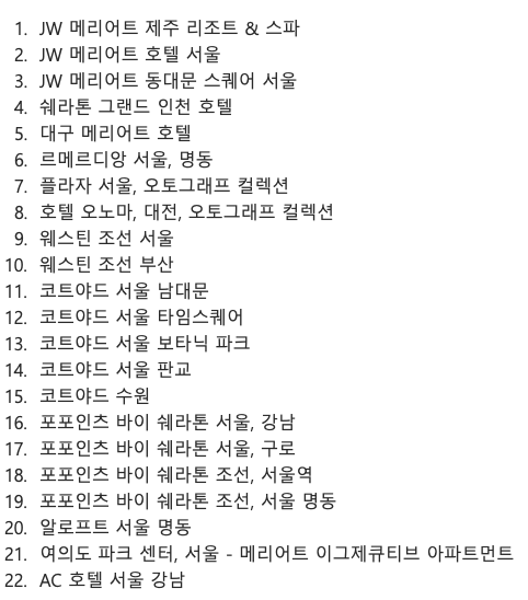 그 포인트로 메리어트 계열의 호텔에서 사용할 수 있습니다.