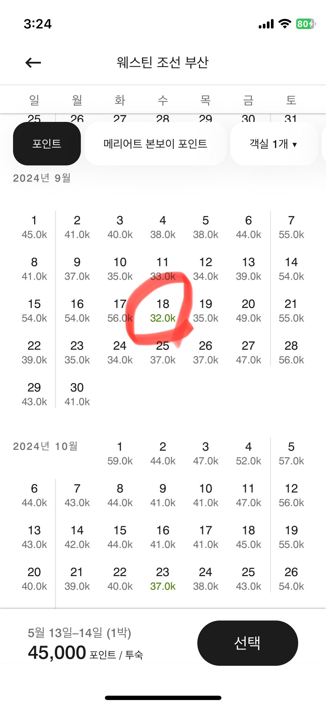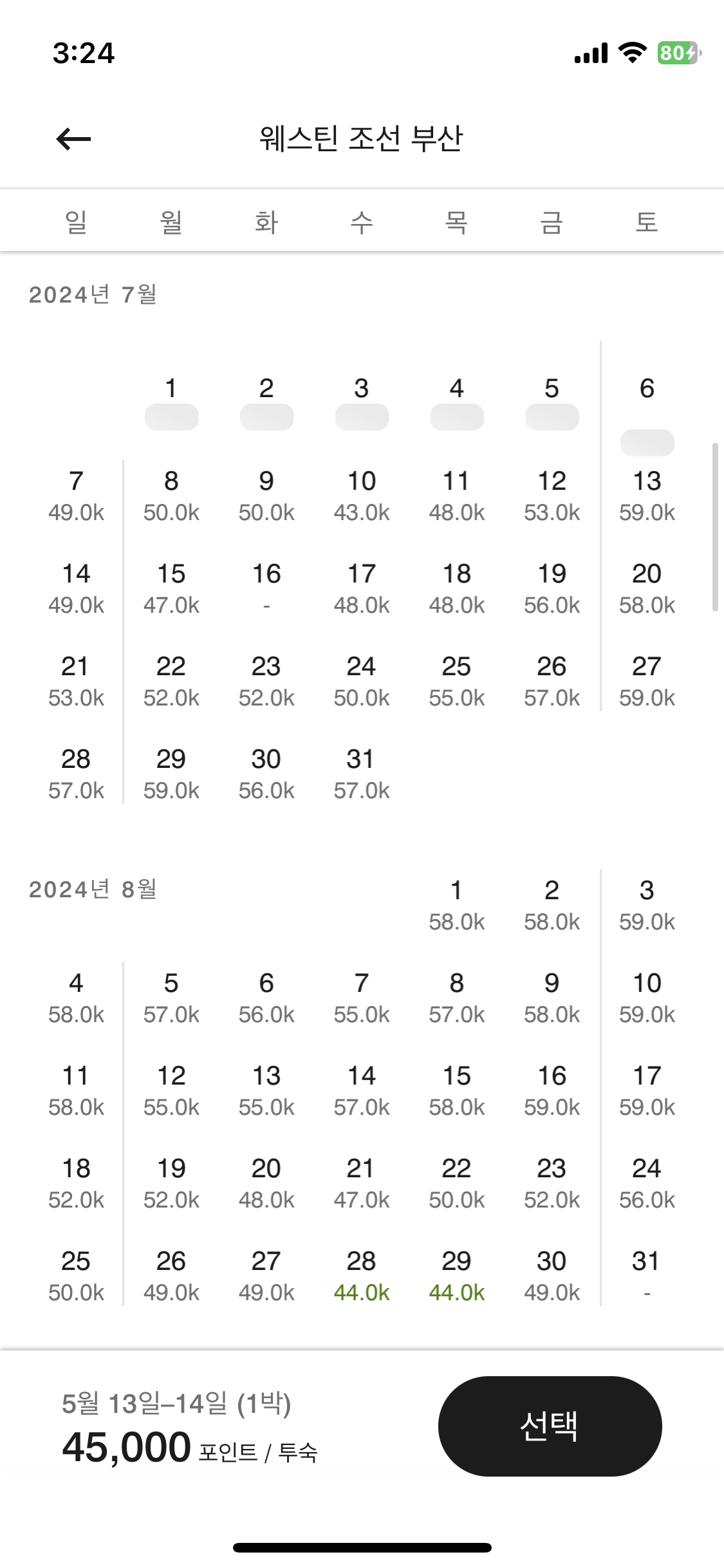 포인트가 올라서 예약할 수 있는 날이 몇 일 없더라고요.