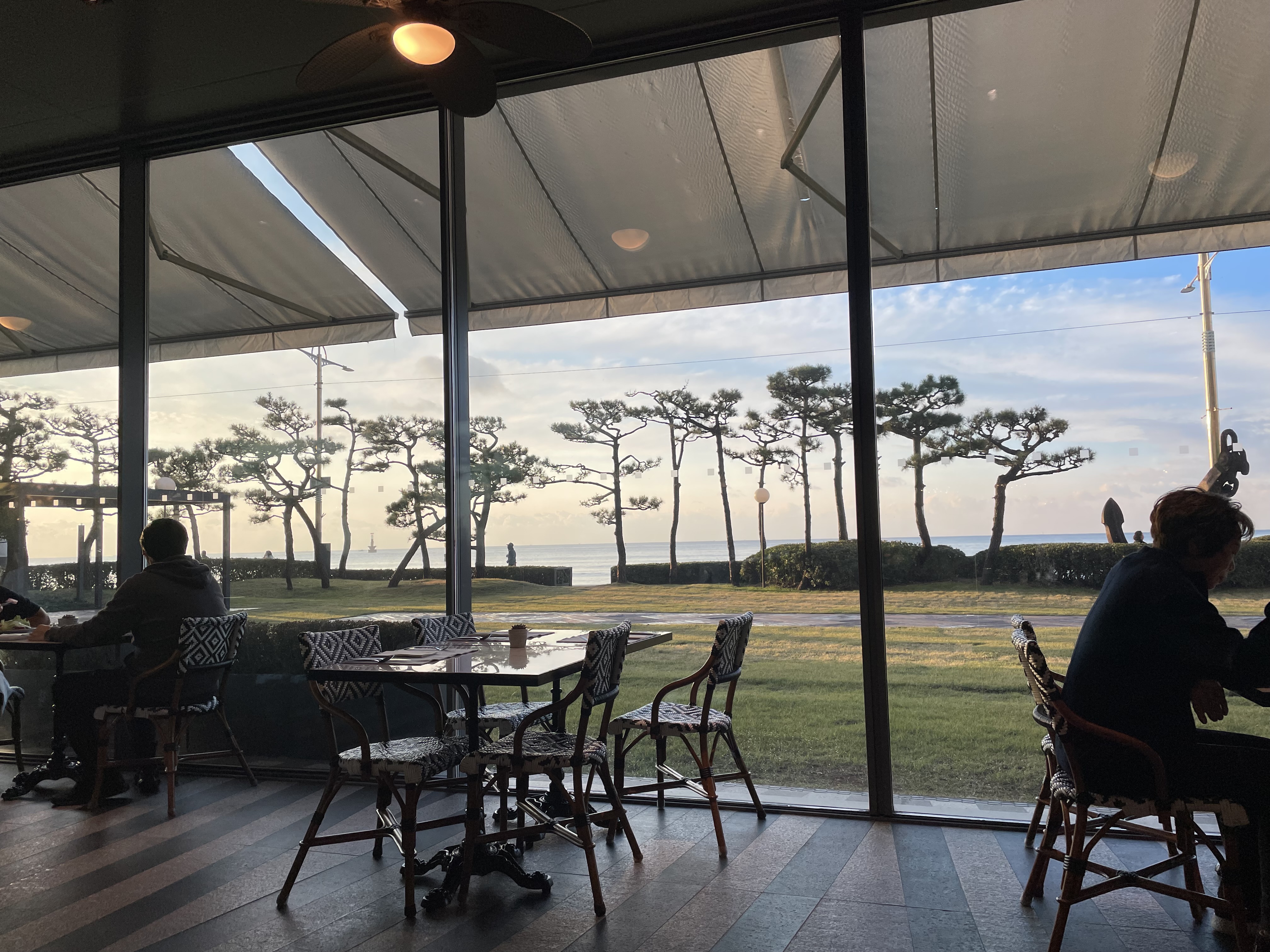 자리를 잘 앉으면 이렇게 밖에 바다를 감상하며