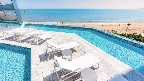 특히 바다를 보며 수영할 수 있는 실외 수영장이