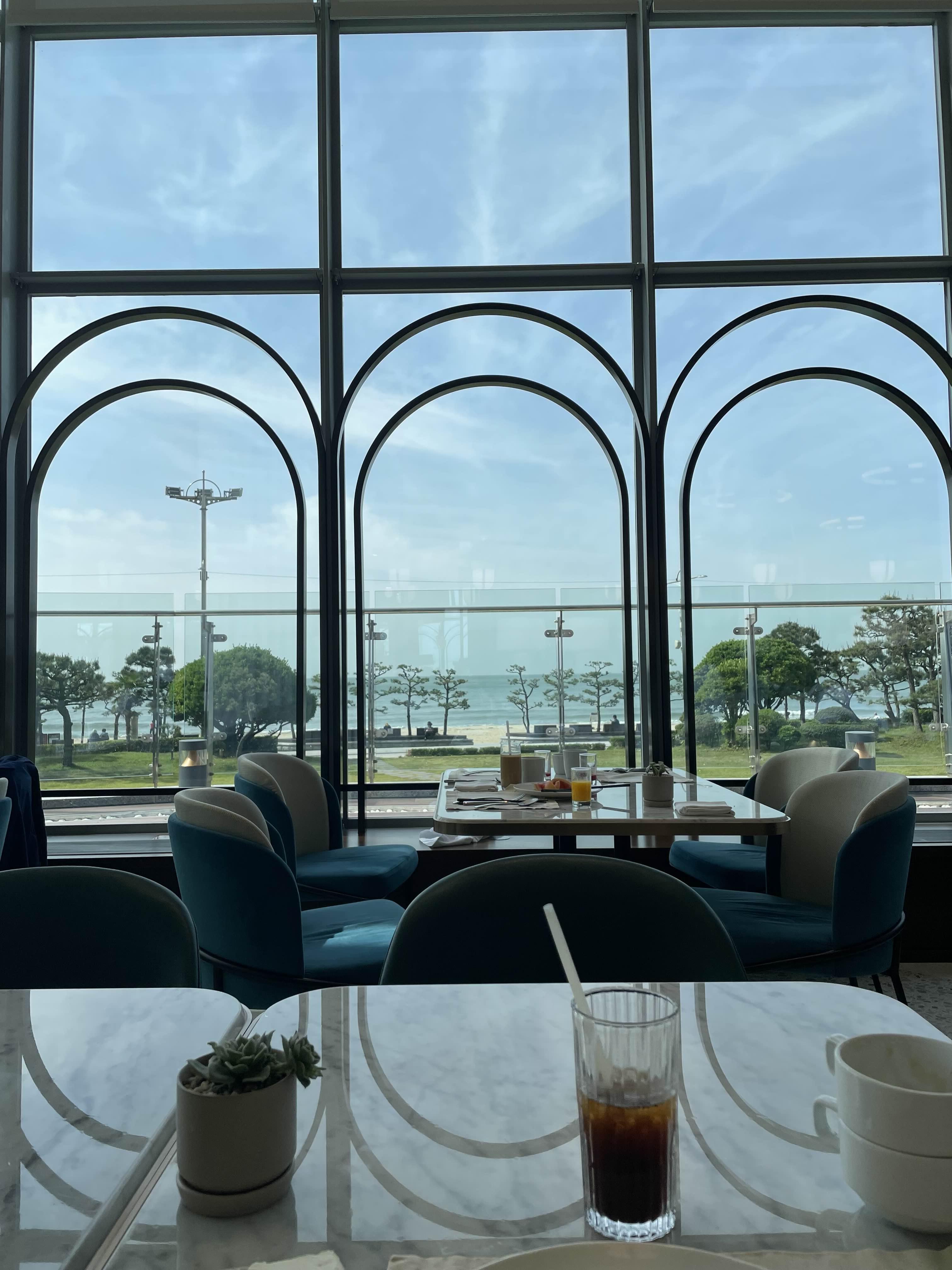자리를 잘 앉으면 이렇게 밖에 바다를 감상하며