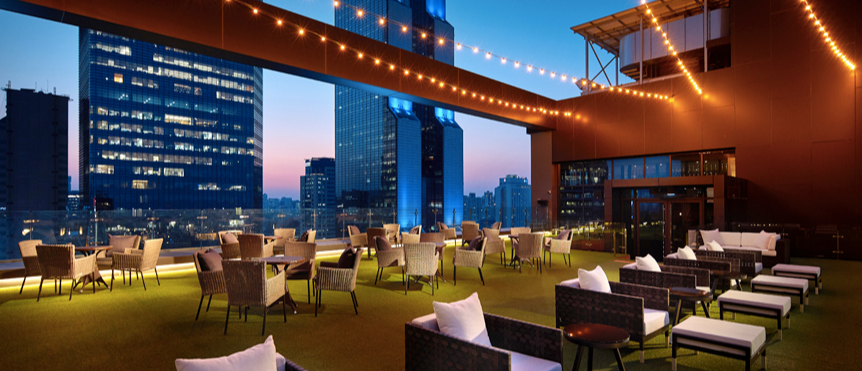 22층 루프탑에 위치한 수영장이 있어 디제잉과 공연, 풀파티를 개최하기도 함