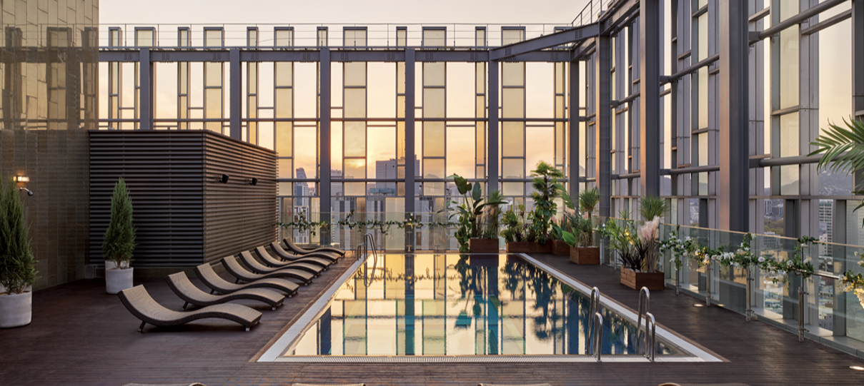 22층 루프탑에 위치한 수영장이 있어 디제잉과 공연, 풀파티를 개최하기도 함