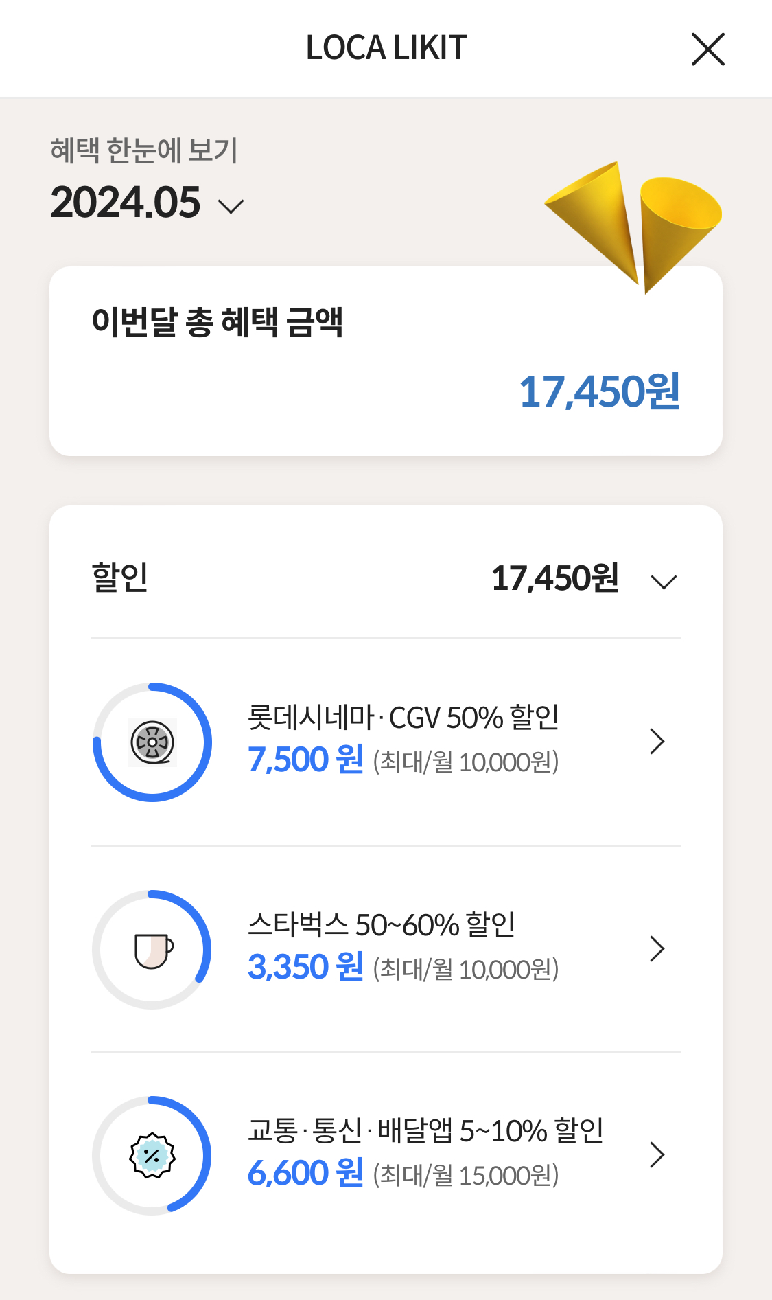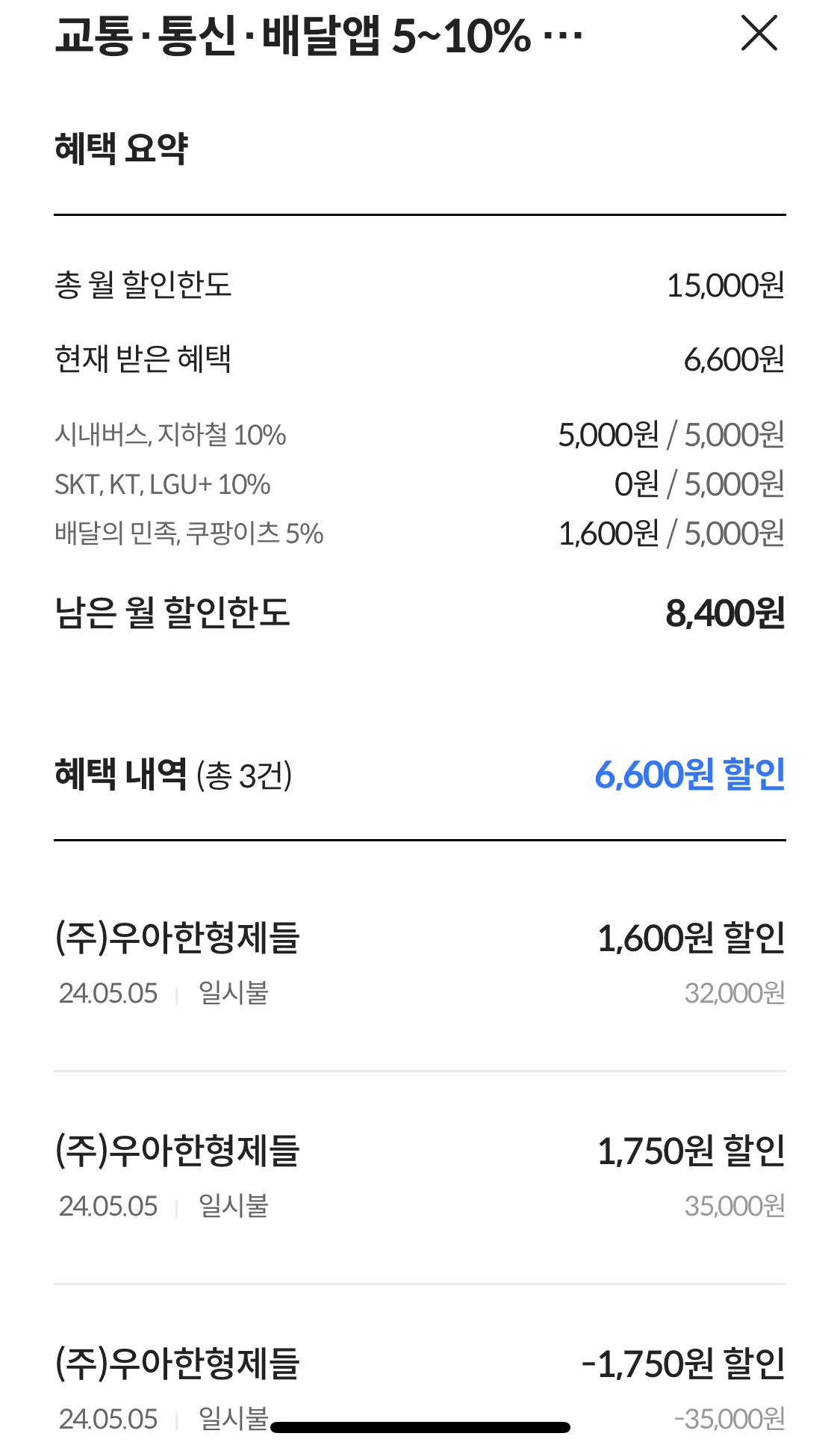 거기에 가끔 영화할인이나 배달할인을 받는 편이예요.