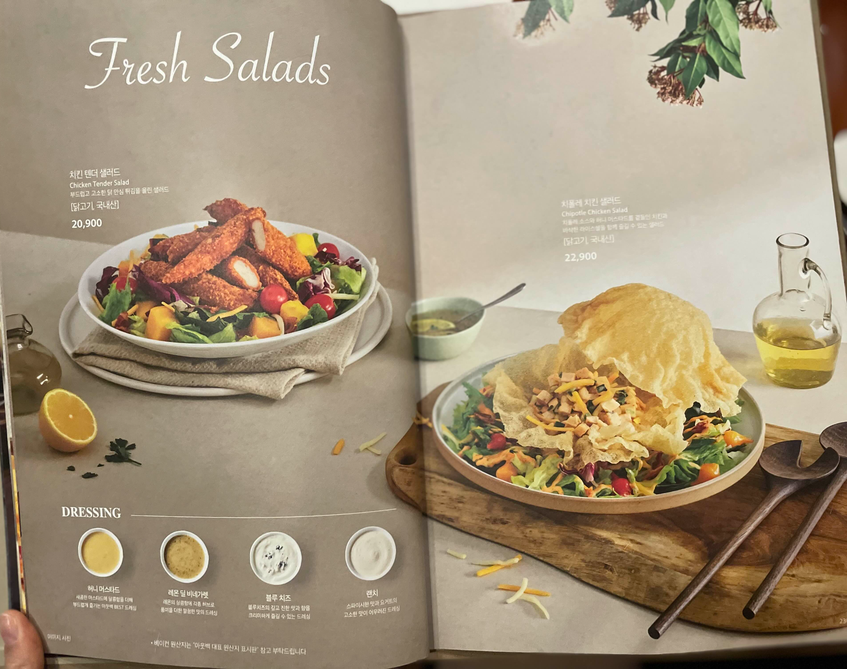 치킨 텐더 샐러드 메뉴로 바꾸었습니다.