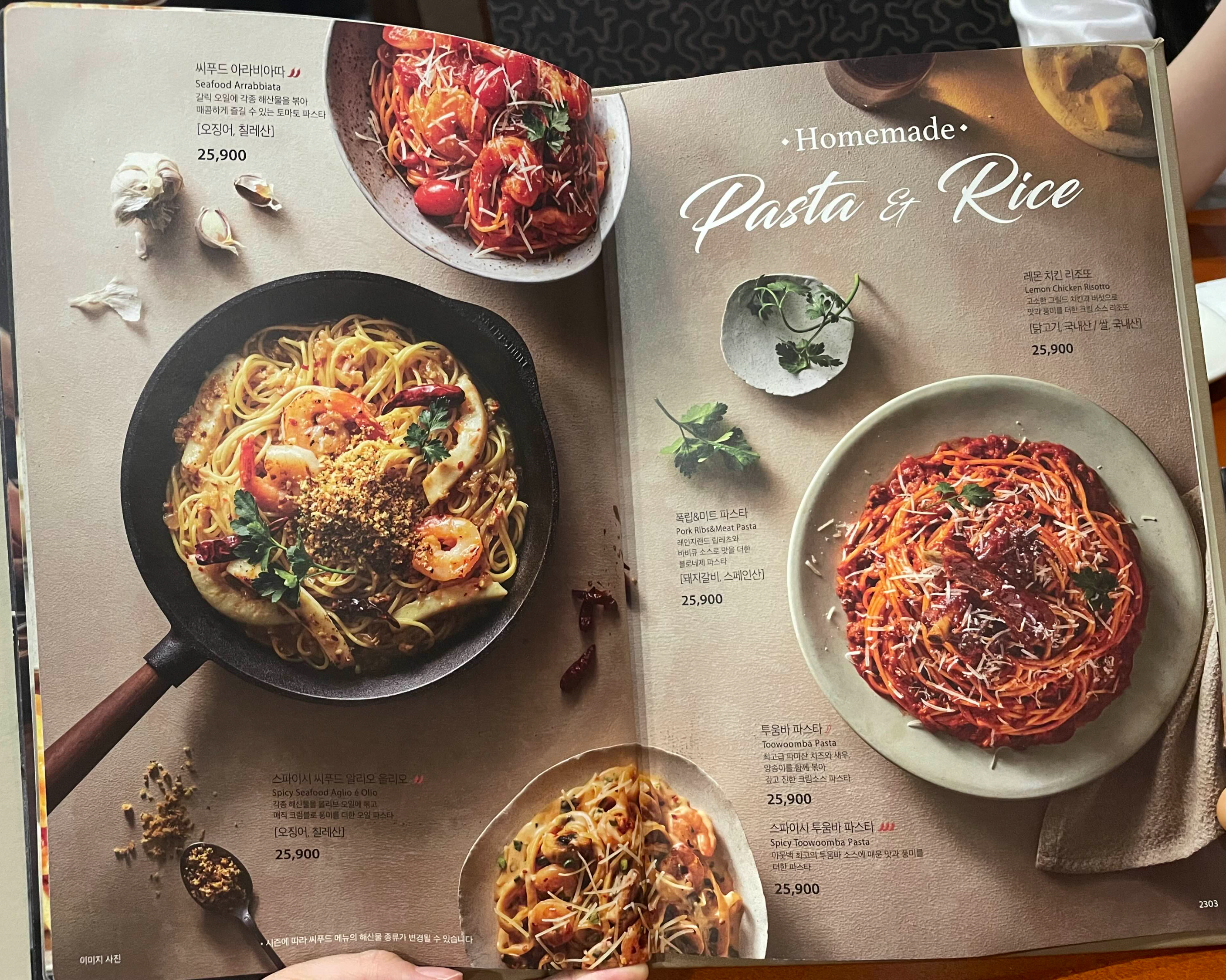 투움바 파스타를 시키기로 했어요.