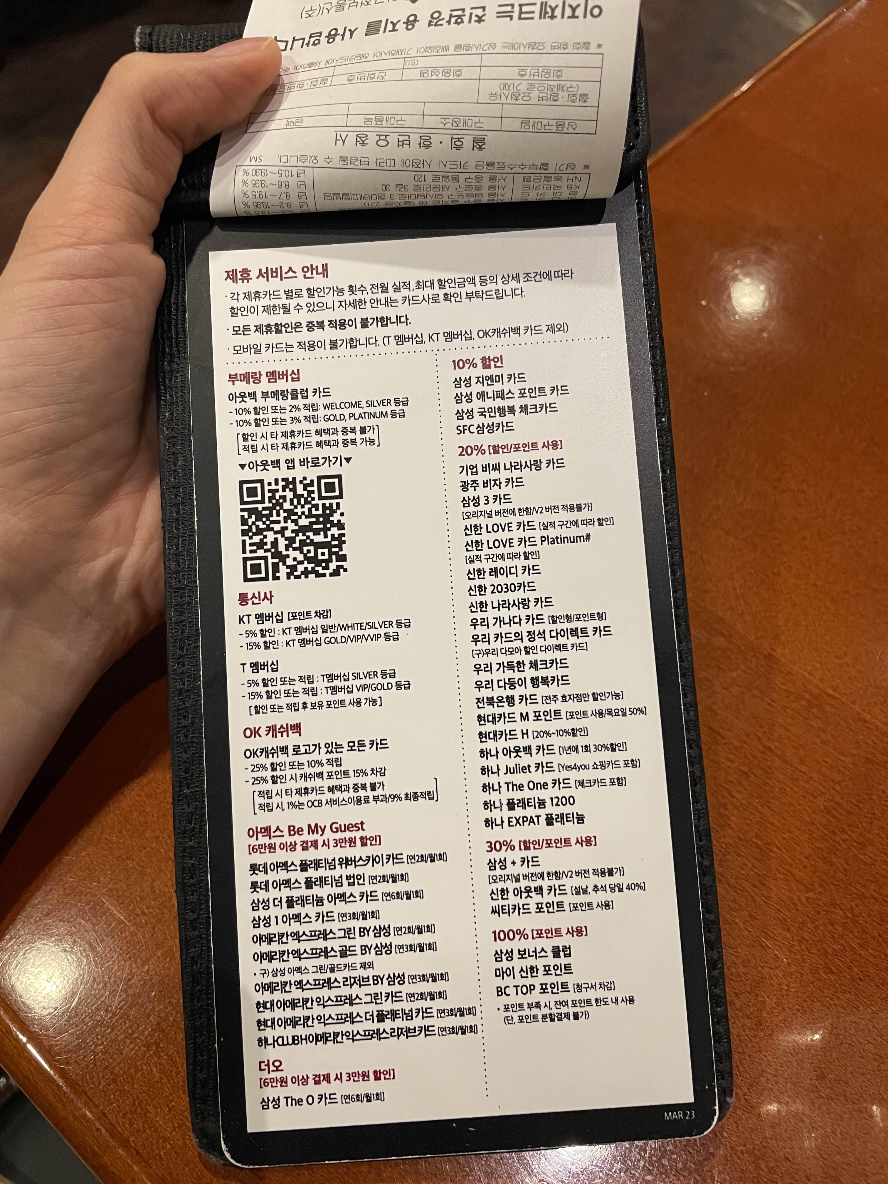 영수증을 넘기면 제휴 서비스 안내가 나옵니다.