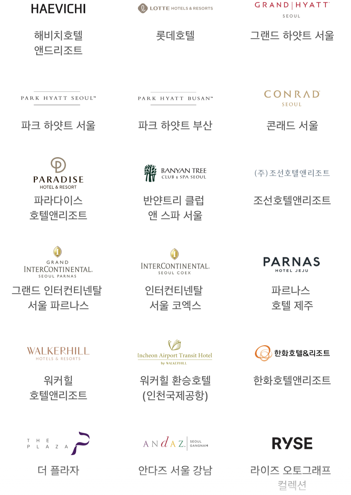 해비치호텔 앤드 리조트, 롯데호텔, 그랜드 하얏트 서울, 파크 하얏트 서울, 파크 하얏트 부산, 콘래드 서울, 파라다이스 호텔앤리조트, 반얀트리 클럽 앤 스파 서울, 조선호텔앤리조트, 그랜드 인터컨티넨탈 서울 파르나스, 인터컨티넨탈 서울 코엑스, 파르나스 호텔 제주, 워커힐 호텔앤리조트, 워커힐 환승 호텔(인천국제공항), 한화호텔앤리조트, 더 플라자, 안다즈 서울 강남, 라이즈 오토그래프 컬랙션, 오크밸리, 다락휴에서 애플페이 사용 가능합니다.