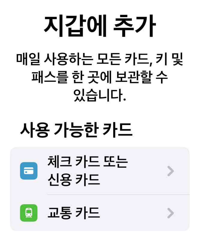 2. 지갑에 들어가서 지갑 앱에 신용카드 또는 체크 카드를.. 에서