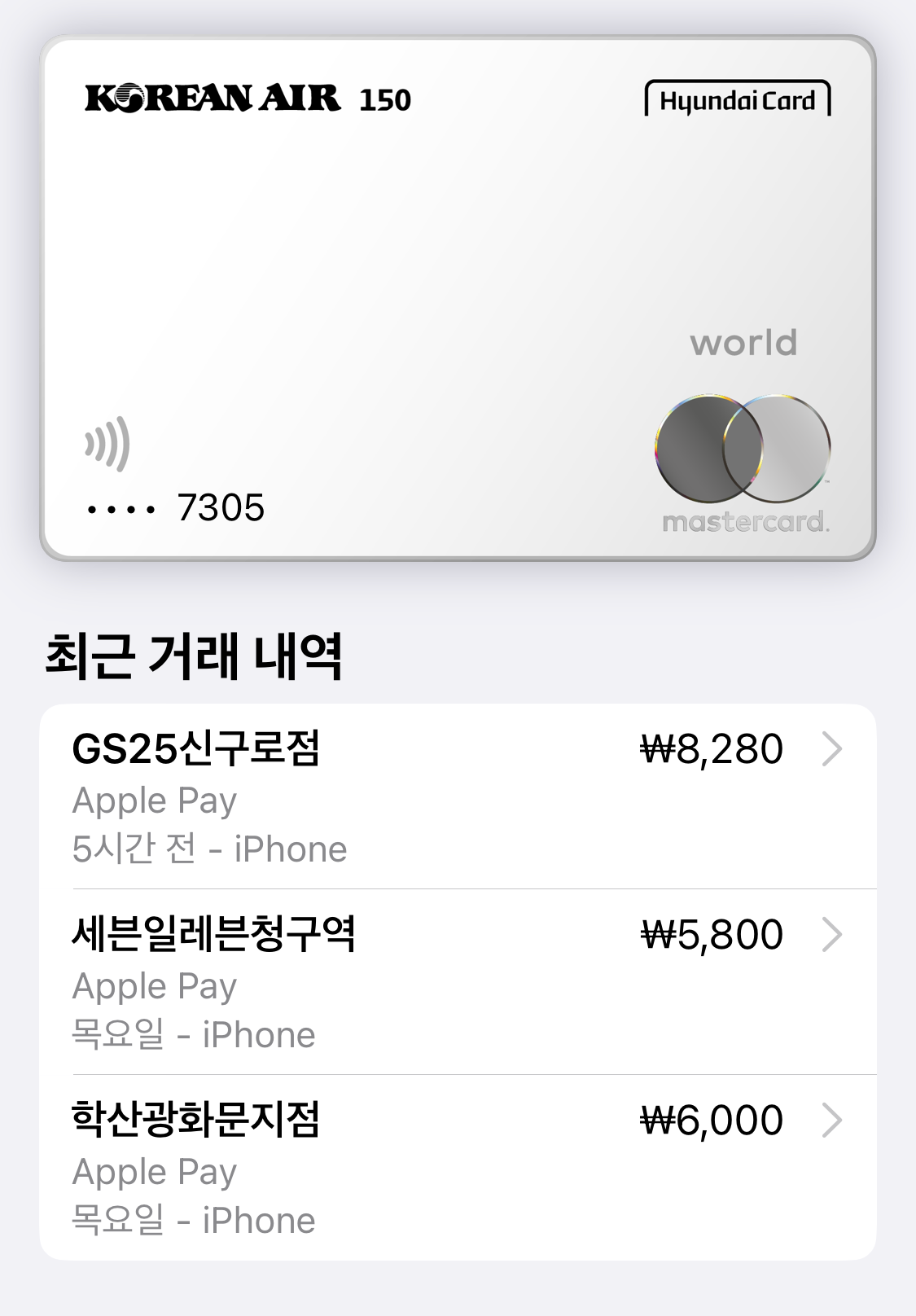 애플페이는 현재까지는 현대카드만 이용 가능하다고 합니다.