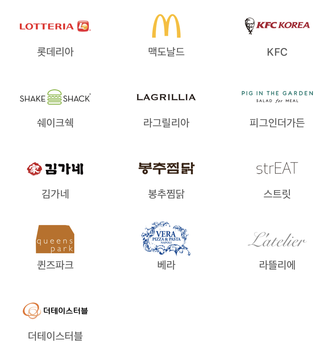 롯데리아, 맥도날드, 케이페스씨, 쉐이크쉑, 라그릴리아, 피그인더가든, 김가네, 봉추찜닭, 스트릿, 퀸즈파크, 베라, 라뜰리에, 더테이스터블에서 애플페이 가능합니다.
