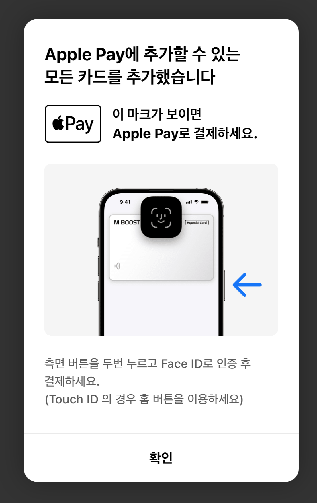 이제 애플페이 설정이 완료되었으니