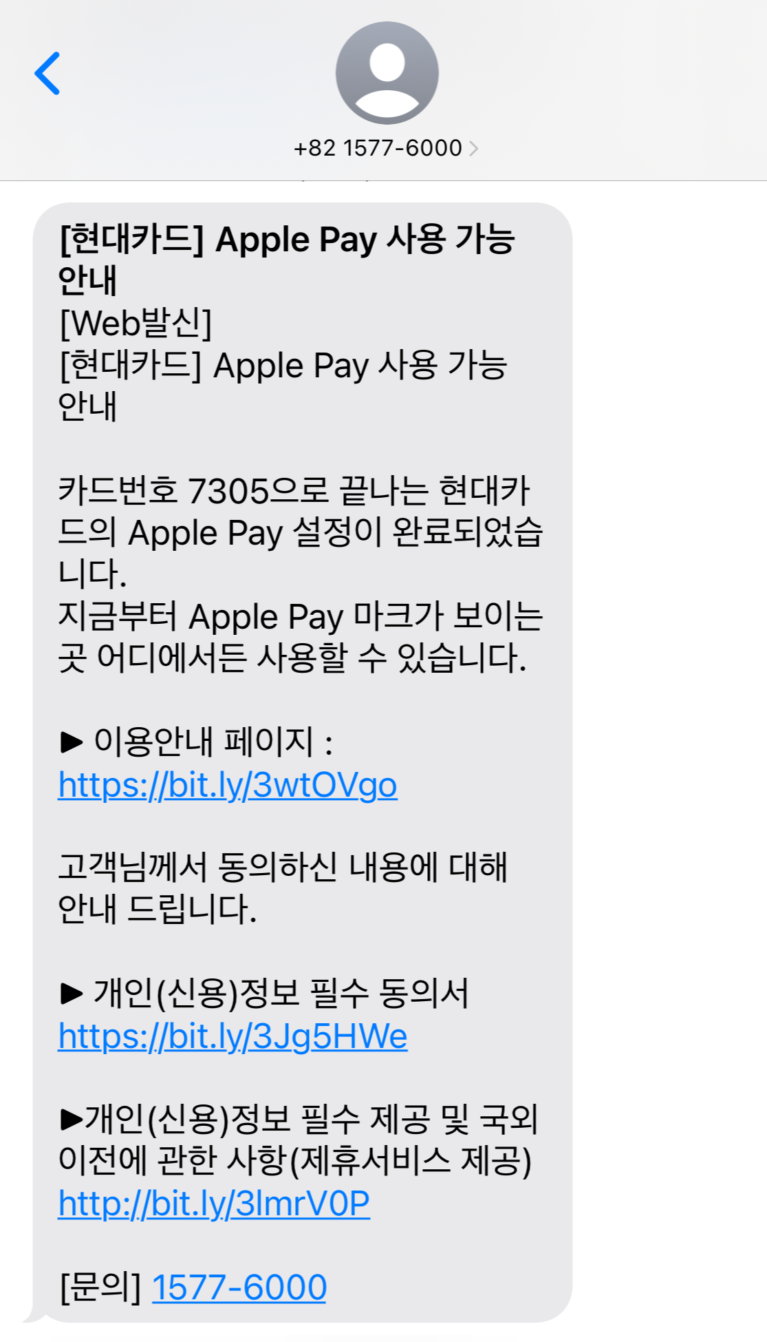 8. 등록을 마무리하면 현대카드에서 문자가 옵니다.