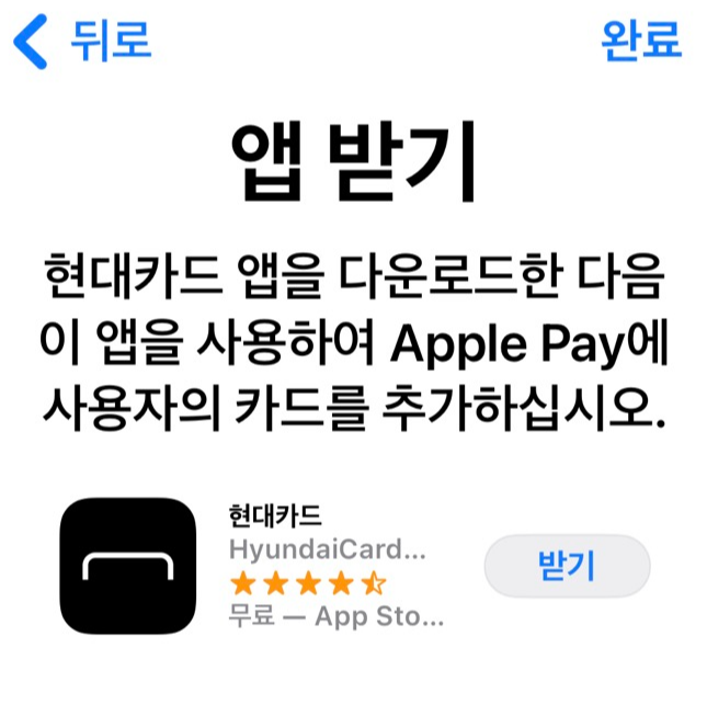 현대카드가 있어야 애플페이 등록이 가능합니다.