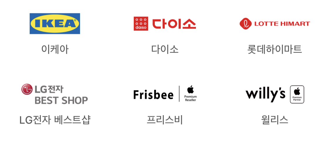 이케아, 다이소, 롯데하이마트, 엘지전자 베스트샵, 프리스비, 윌리스에서 애플페이 사용 가능합니다.