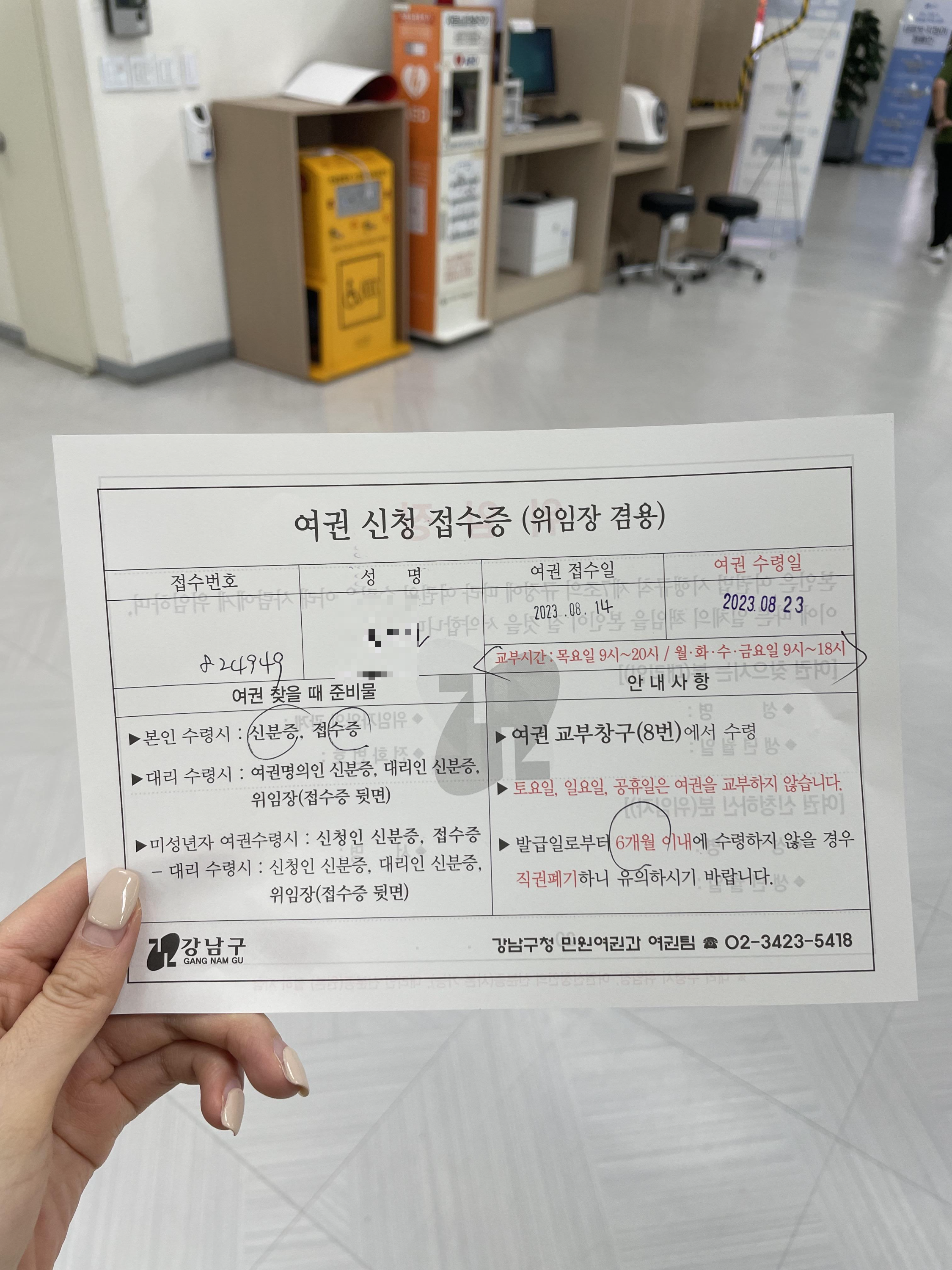 강남구청 여권업무 이용시간: 평일 09:00-18:00