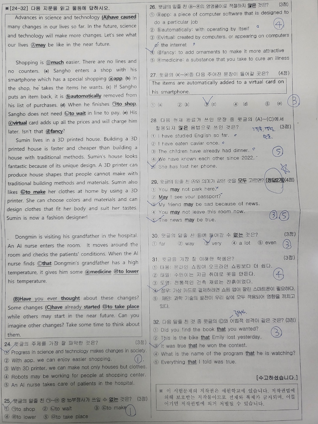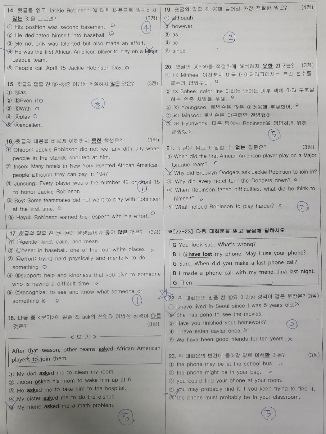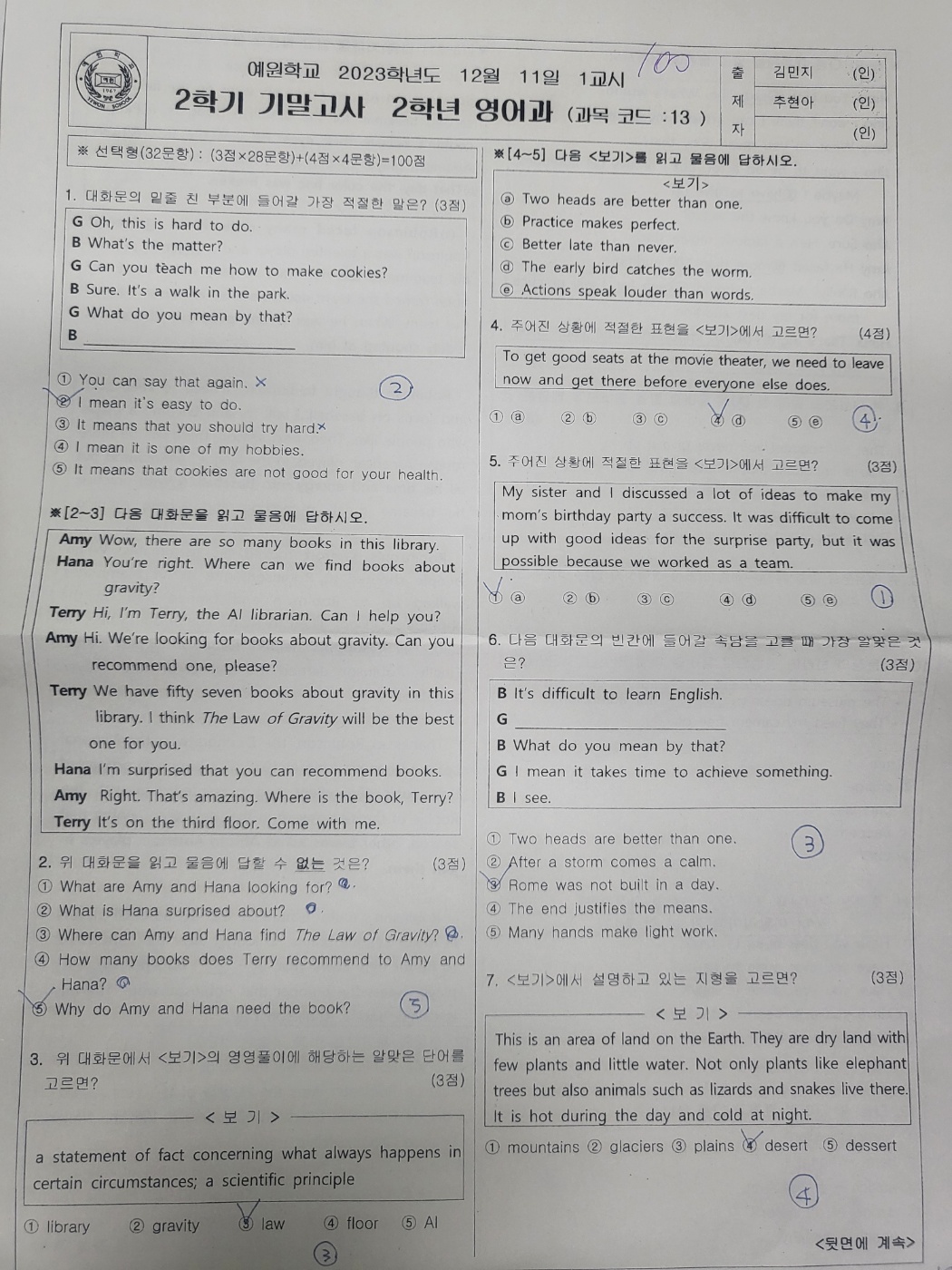 <예원학교 2023년 2학년 2학기 기말고사 영어 기출문제>