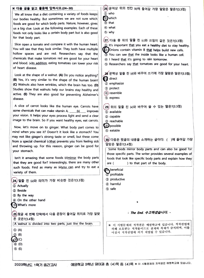 | 예원학교 2023년 2학년 2학기 기말고사 영어 기출문제 (66) | 2023.12.22 |