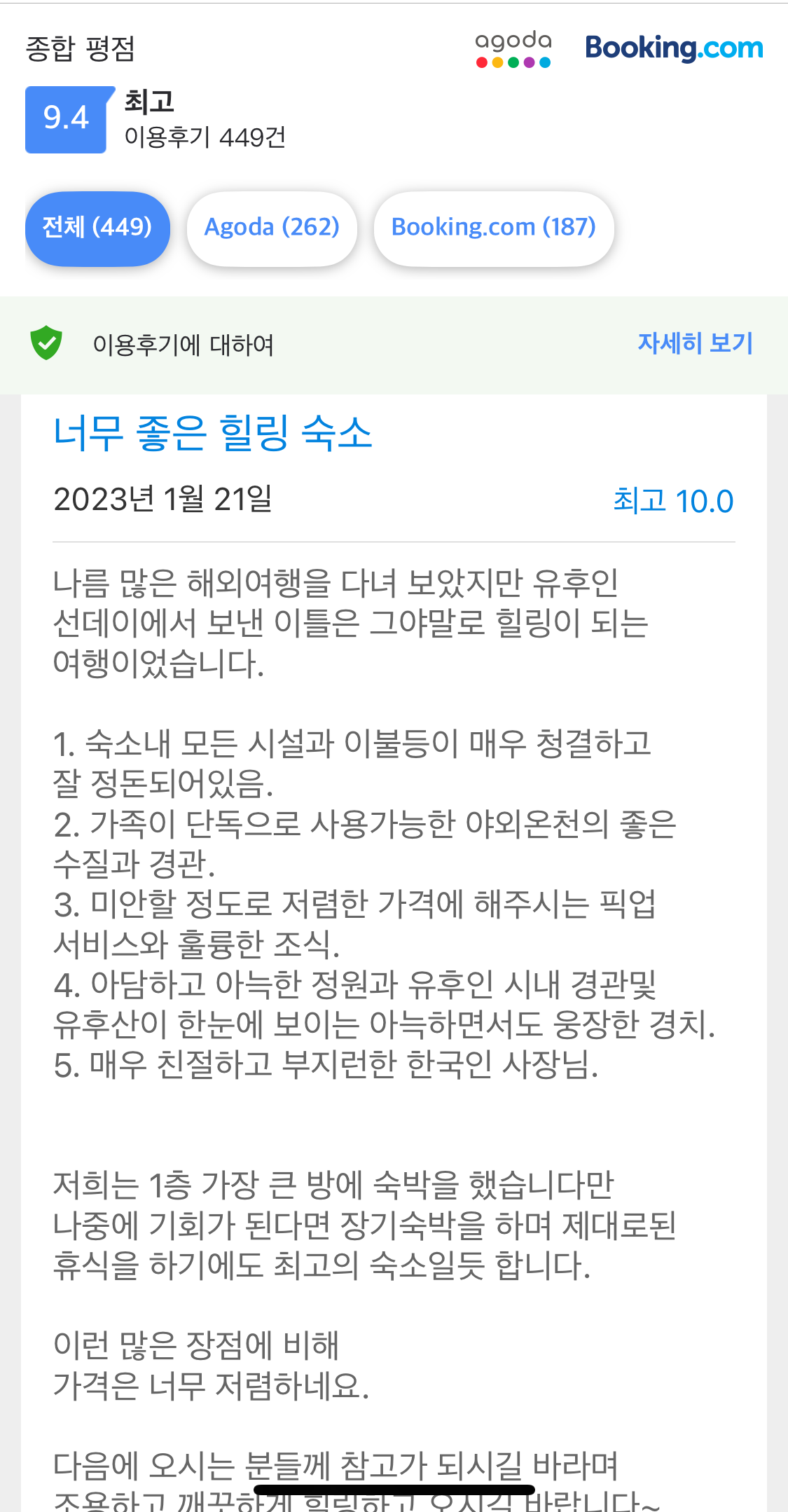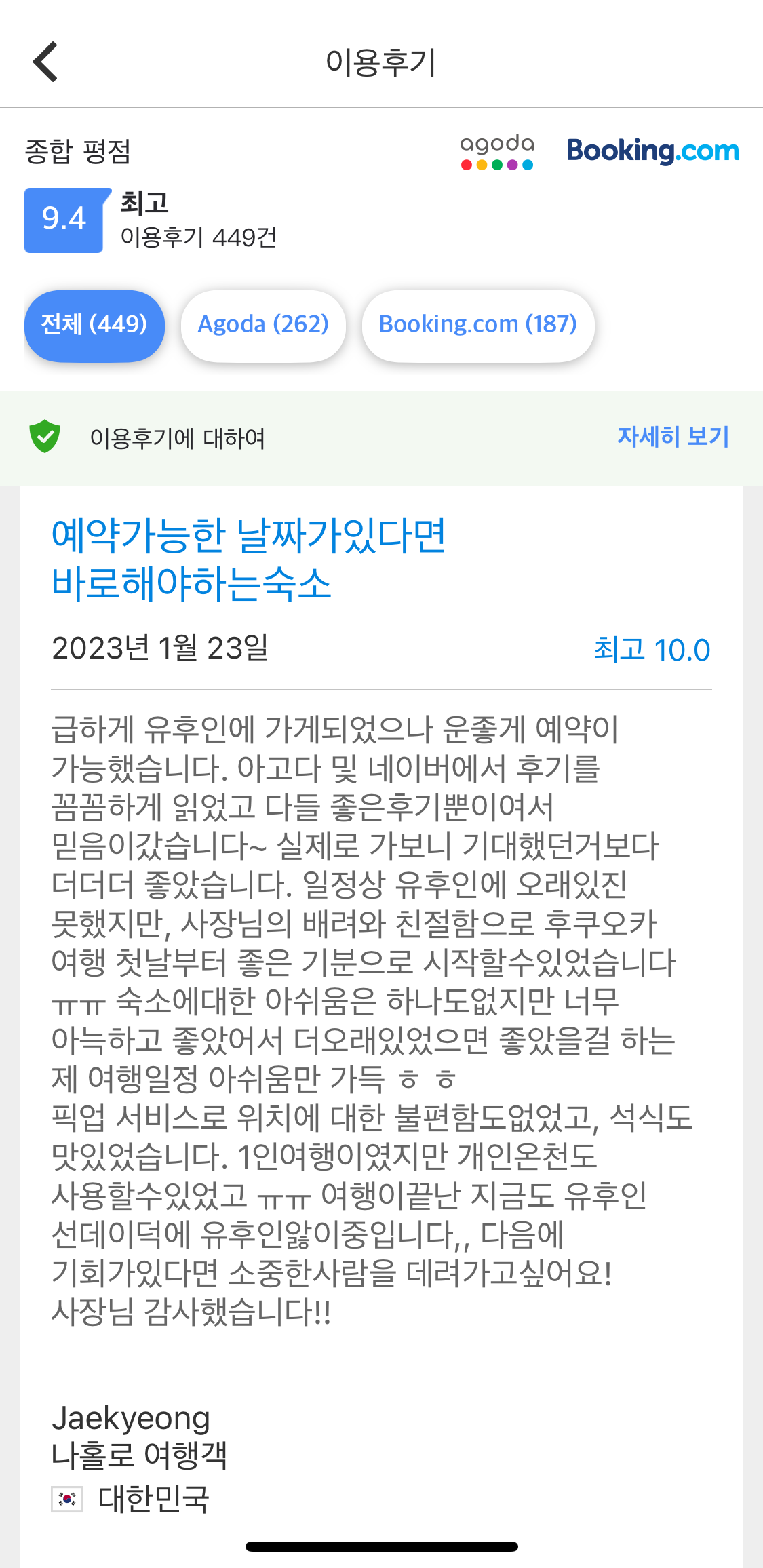이 숙소에서 정말 기분 좋은 경험하고 와서