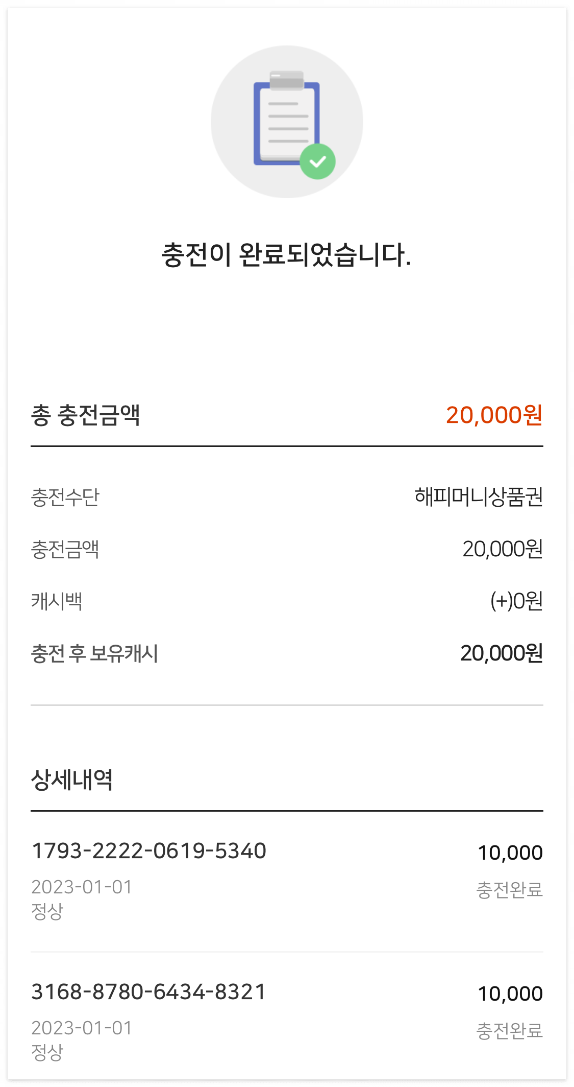 발행일자는 해피머니 상품권 뒷면에 있습니다.