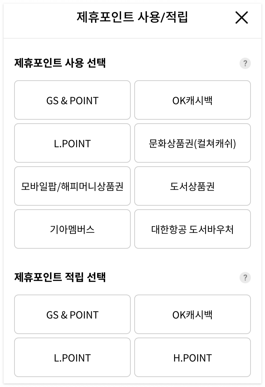 제휴포인트 사용/적립에 들어갑니다.