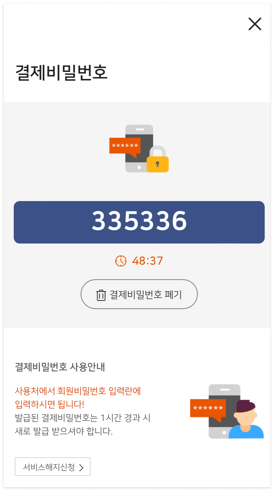 해피머니 앱 상단에 결제비밀번호를 확인합니다.