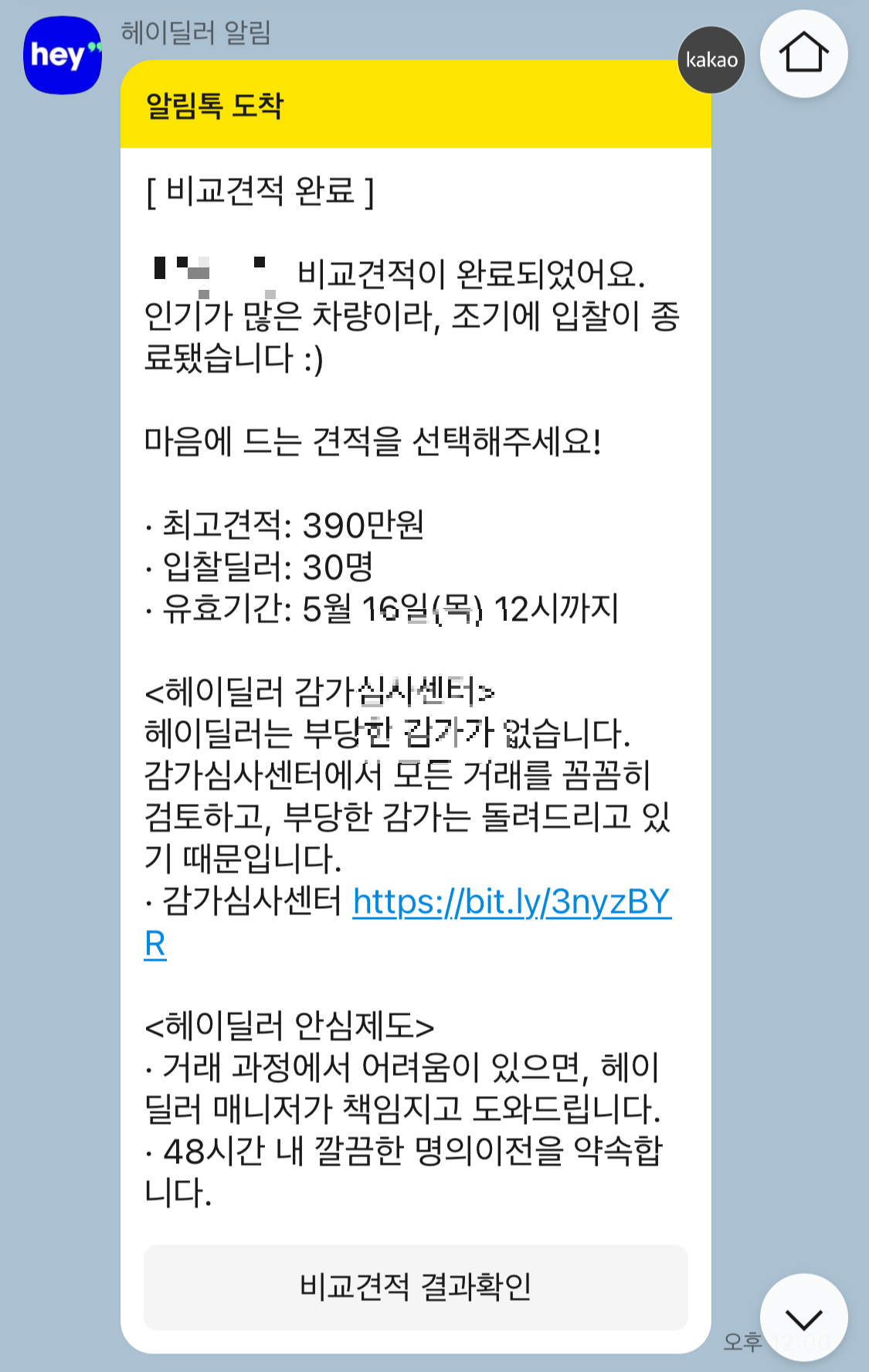 카톡으로 헤이딜러에서 메세지가 와서 확인했는데