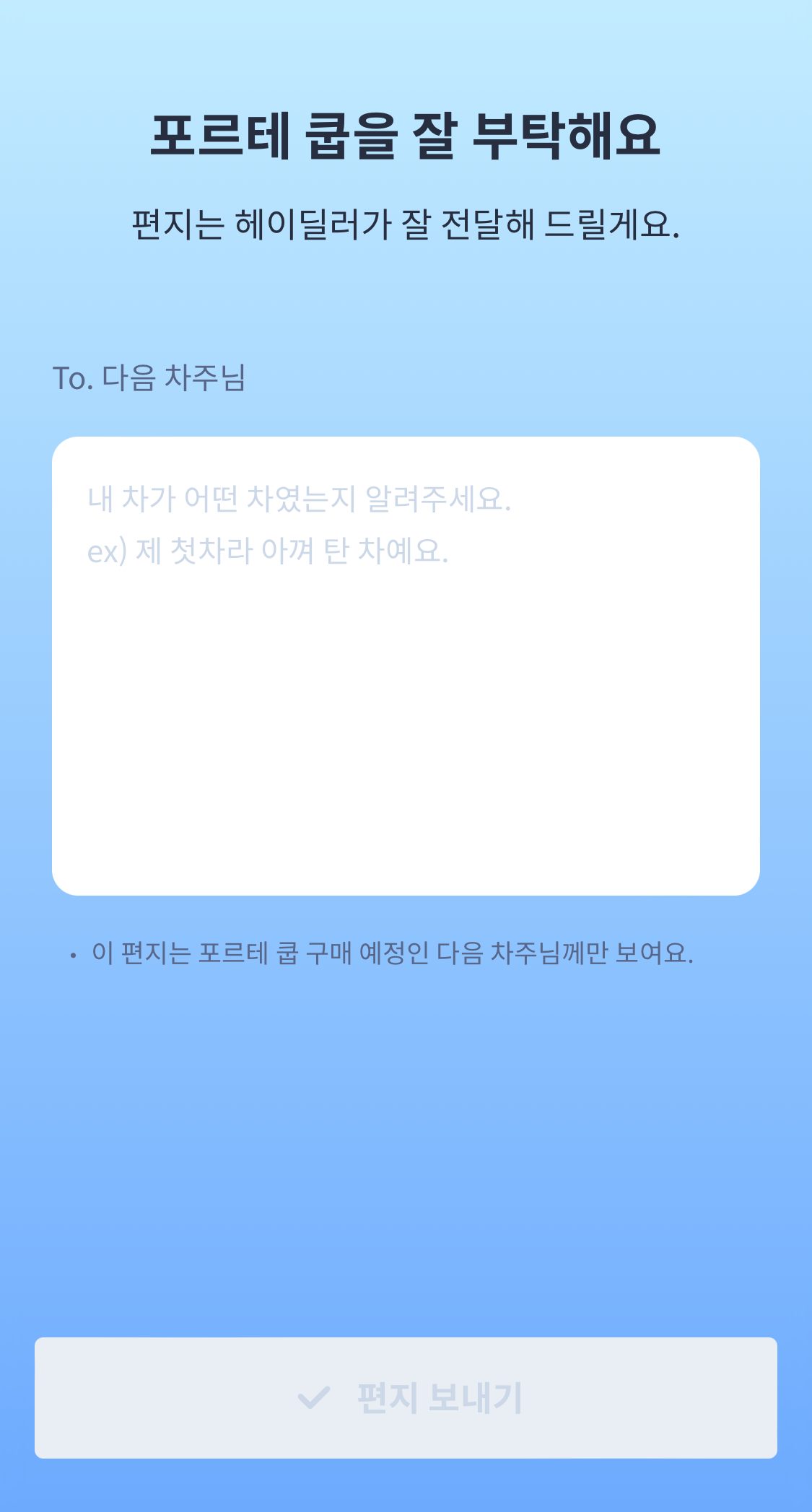 다음 차주에게 잘 부탁한다는 편지를 써다라고 하더군요.