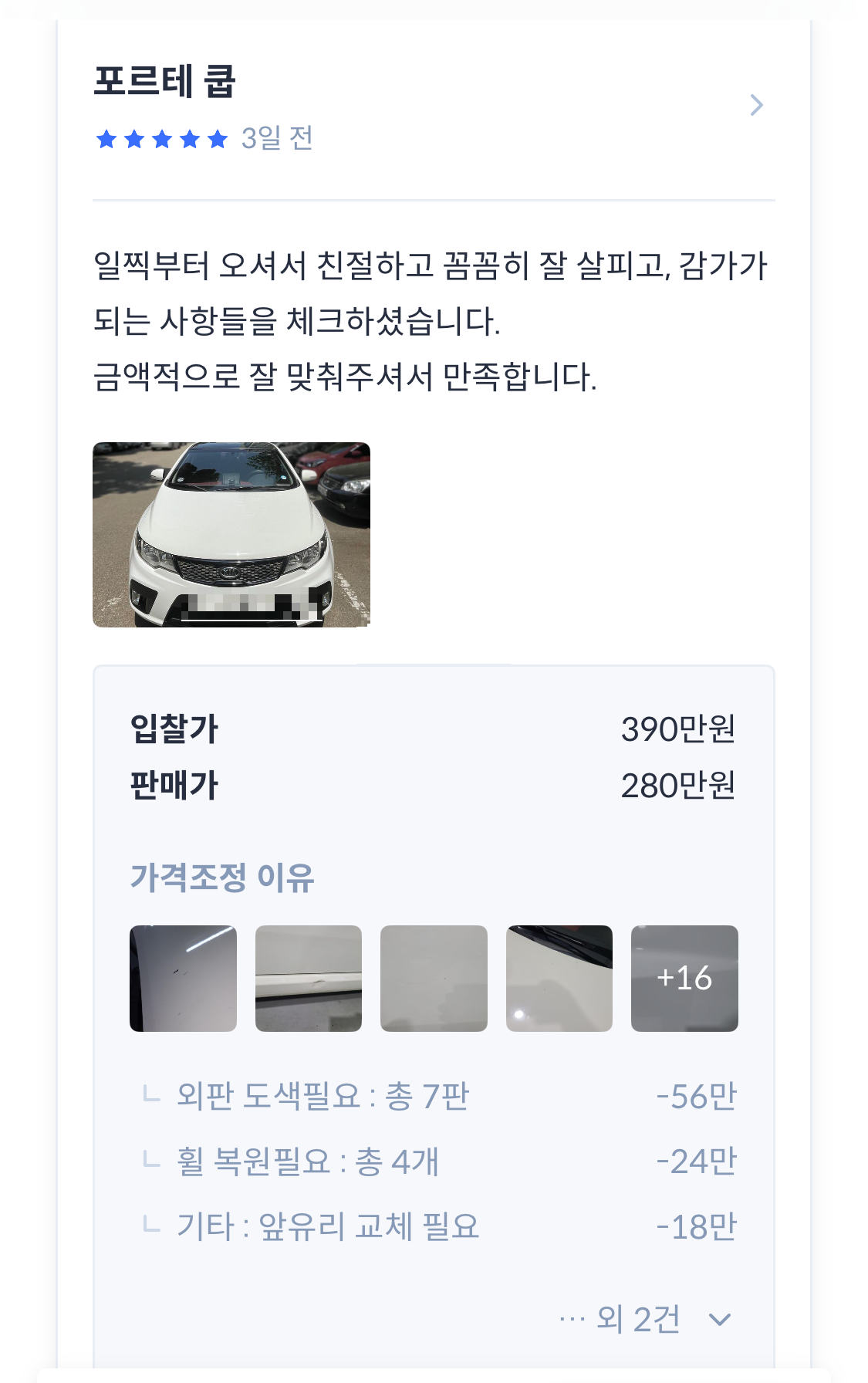 일주일도 안되어서 중고차를 판매할 수 있었습니다.