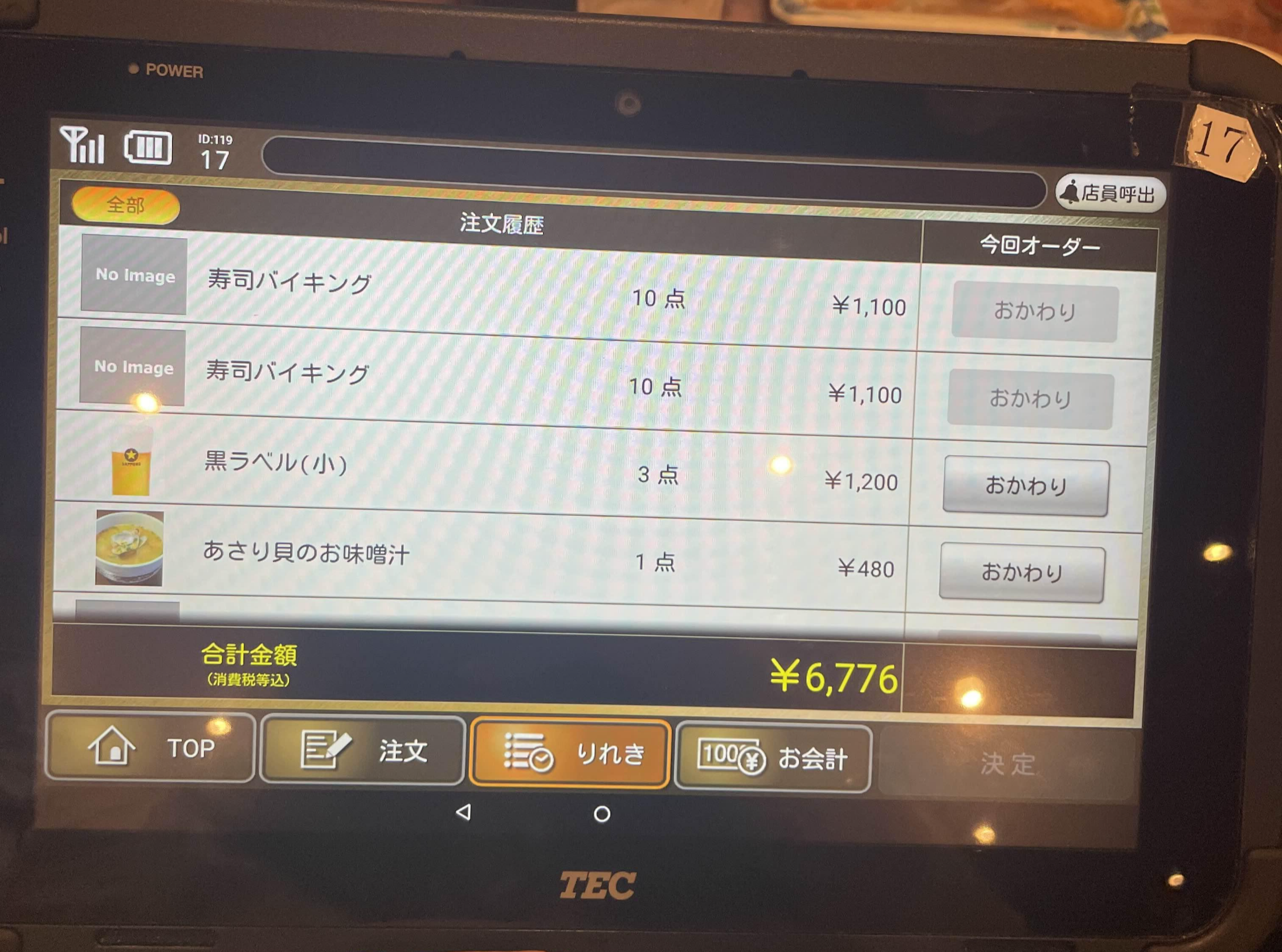 세금 포함 총 6,776엔 나왔습니다.