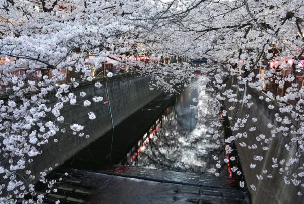 메구로강 옆에 늘어선 800여그루의 벚나무를 관람하며 산책
