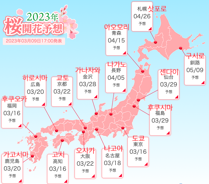 2023년 일본 벚꽃 개화 시기