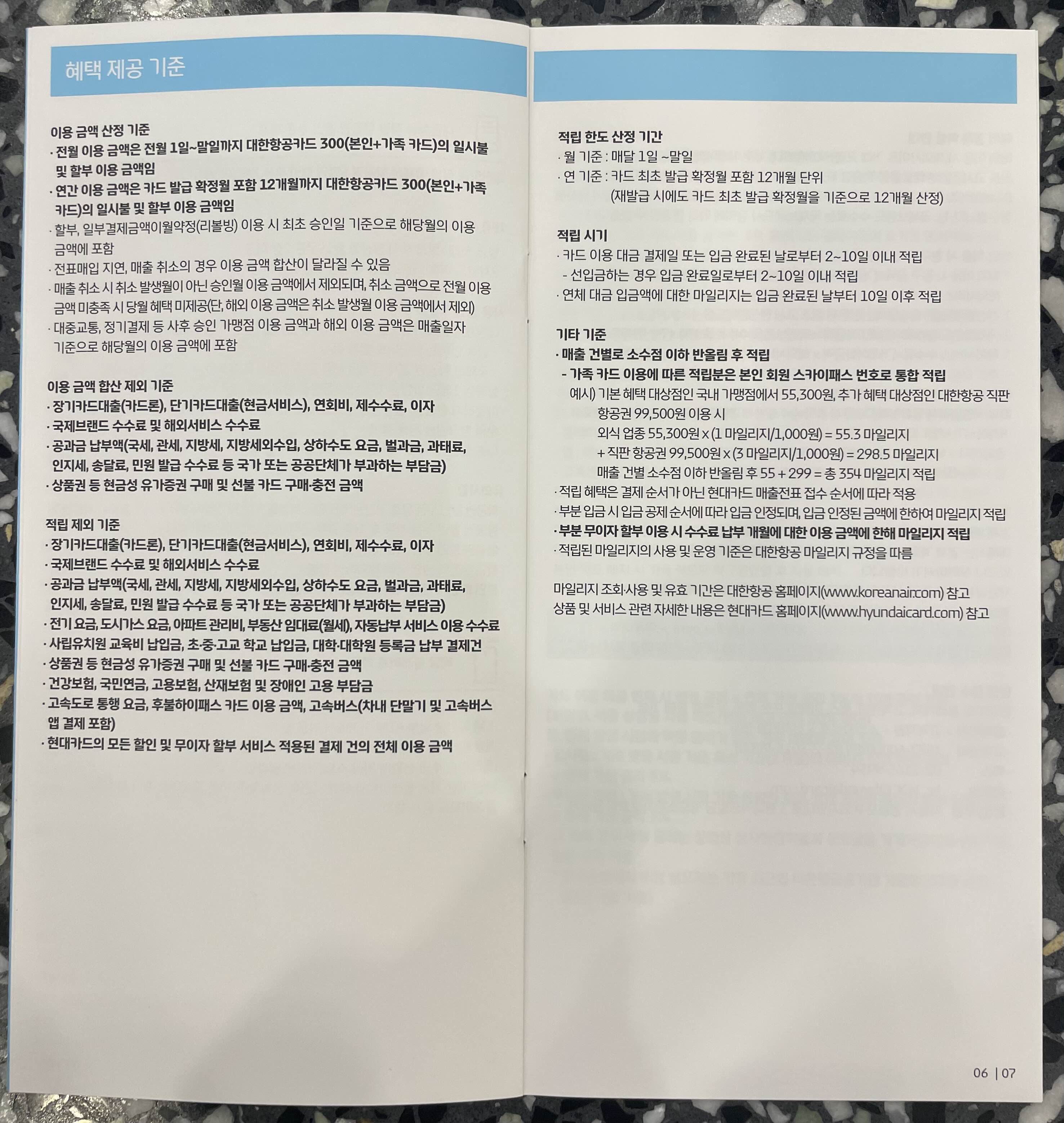 현재 진행 중인 대한항공카드의 혜택입니다.