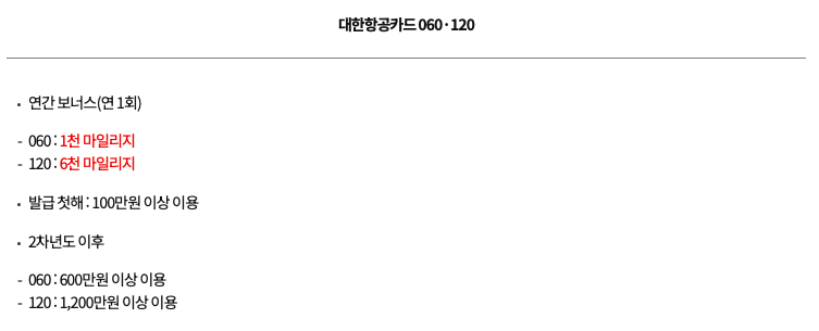 기본 혜택은 대한항공카드 060, 120과 동일한데